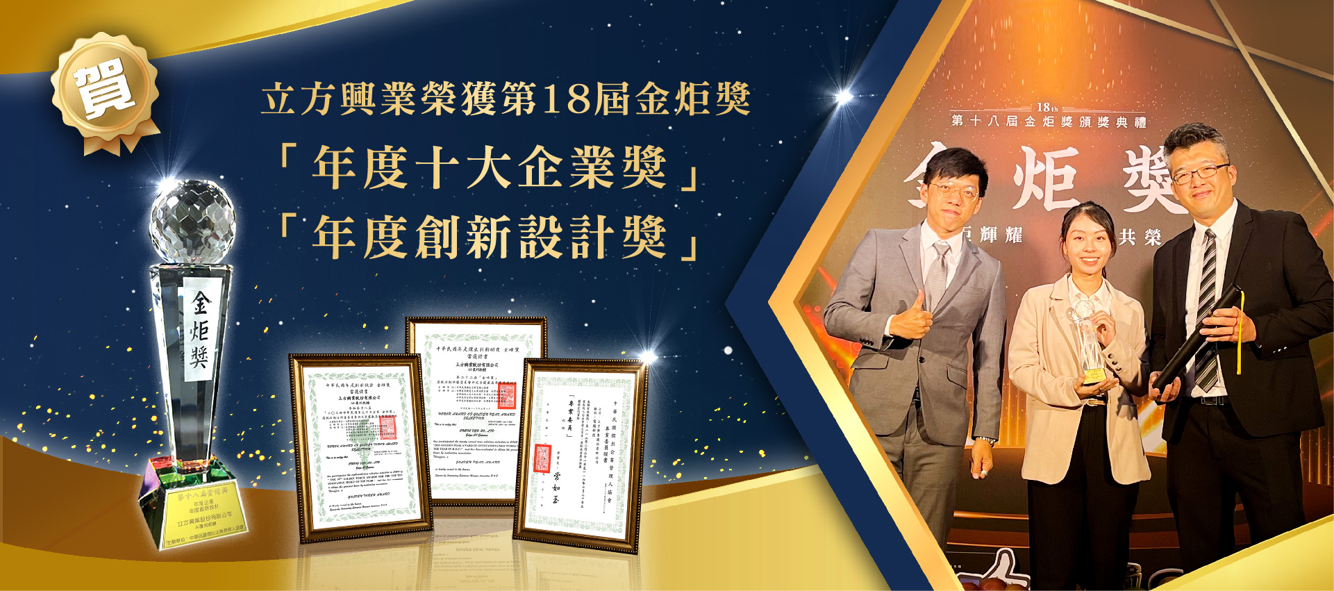 恭賀!立方興業股份有限公司榮獲第18屆「金炬獎」–「年度創新設計獎」及「年度十大企業獎」。