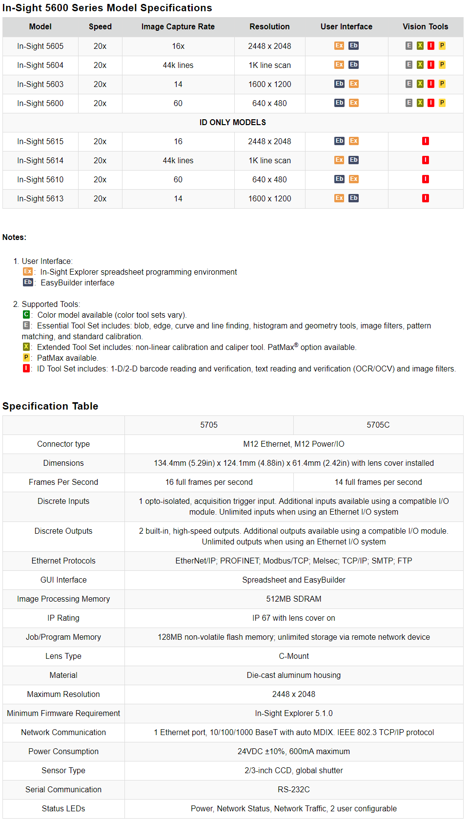 康耐視COGNEX In-Sight 5600 與 5705 視覺系統的各機型均具備同類產品中最佳的性能,大多數的機型均配備康耐視獲肯定的全套視覺工具庫,透過簡單易用的 In-Sight 資源管理器軟體即可使用。