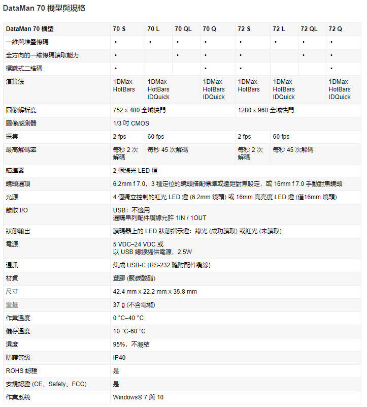 康耐視COGNEX DataMan 70 配備領先業界的 1DMax® 搭配 Hotbars 與 IDQuick® 讀碼演算法,即使有對比度、模糊、損壞、解析度、靜音區干擾及透視畸變等各種不同的情況,仍能可靠地讀取標籤式一維條碼與二維碼。