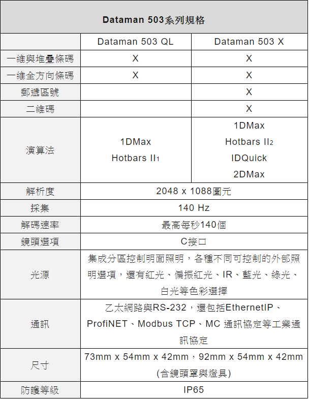 提供業界最高的讀取率,性能回饋且無移動零件的先進 DataMan 503,適合難度最高的條碼讀取應用使用,並將改變業界對讀碼器應用層面的看法。