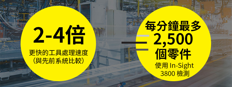 速度超群,引領產業。In-Sight 3800 的處理能力是先前視覺系統的兩倍,可為任何製造應用提供頂級效能。快速的工具速度能跟上您經營事業的腳步,讓您能夠提高處理量並充分利用您的自動化解決方案。