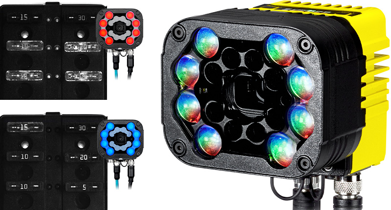 拍攝任何環境中任何產品的高解析度影像。多色照明 (RGBW 和 IR) 可最佳化影像成像,無論操作條件如何,均能達到最大的對比度和照明。只要按一下 In-Sight 視覺套裝軟體中的按鈕,即可變更燈光顏色並產生高解析度影像,以便檢測更精準。 |
