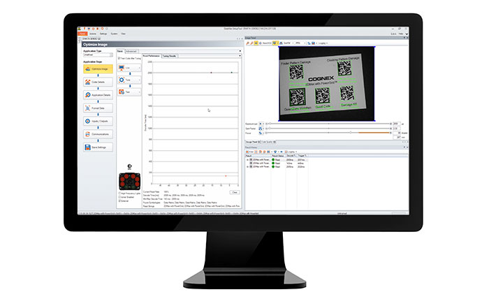 新近最佳化的 DataMan 設定工具所提供的逐步安裝流程,設定簡單且有效率,簡化讀碼器設定過程。DataMan 470 系列包括 Gigabit Ethernet 可將全解析度的圖像迅速傳送至設定工具,協助診斷代碼無法讀取的原因。