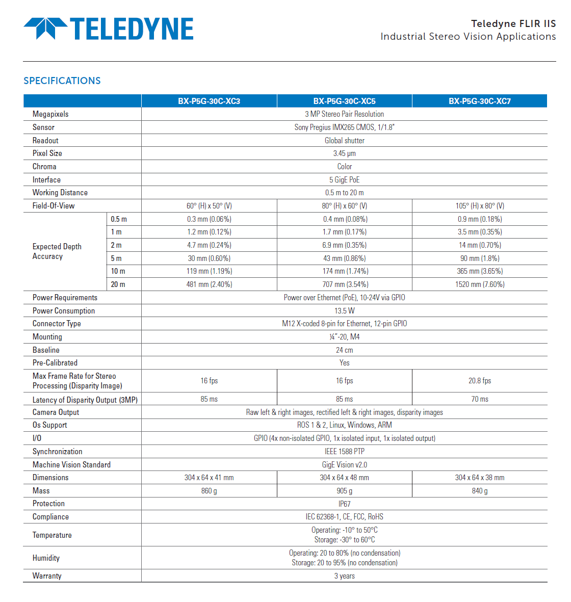 Teledyne FLIR Bumblebee X 工業立體視覺相機