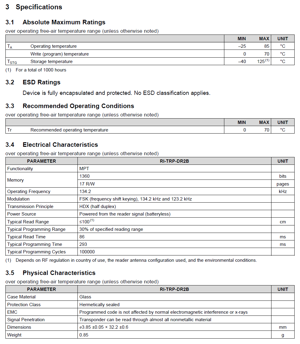 TI 32 毫米玻璃應答器具備穩定且高效的性能,運作於 134.2 kHz 的諧振頻率。此產品符合 ISO 11784 與 ISO 11785 全球開放標準,確保廣泛的相容性。透過 TI 專利的調諧製程製造,能提供一致的讀寫效能。每一顆應答器在出貨前都經過完整的功能與參數測試,以確保 TI 的高標準品質。其應用多元,適用於門禁控制、車輛識別、貨櫃追蹤、資產管理、廢棄物管理,以及半導體載具管理等領域。