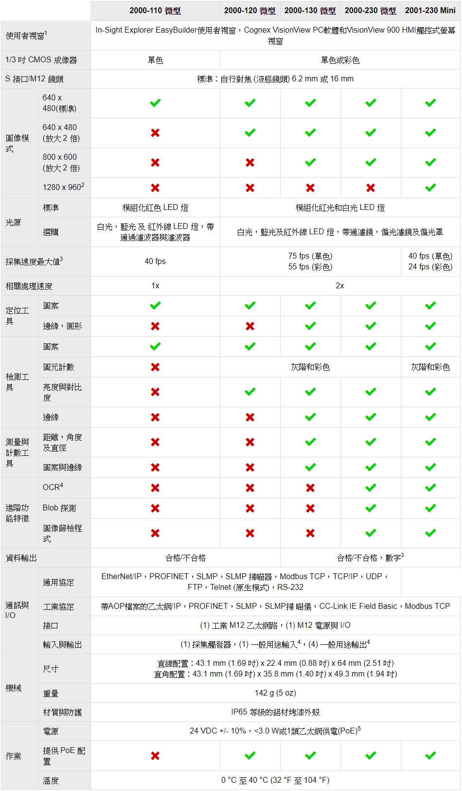 康耐視COGNEX In-Sight 2000 微型視覺感測器功能特徵