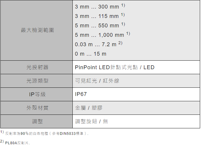 圓柱形M18外殼的GR18產品系列提供最佳性價比。透過標準的M18外殼結構,可通用于多種應用。PinPoint LED針點式光點、塑膠與金屬制外殼產品系列以及無死角的狀態顯示完善其特徵。- 標準外殼結構的實惠型圓柱形M18感測器
