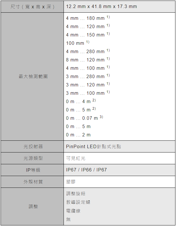 - 採用類雷射型光點的BGS感測器,用於精確的檢測任務