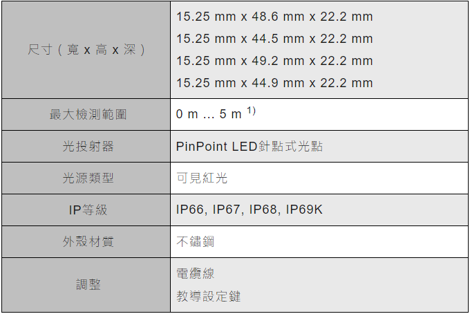 - 透過Pin-Point技術,所有產品系列都提供類雷射型光點