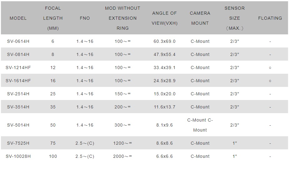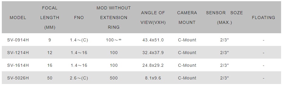 VS工業鏡頭SV-H型號