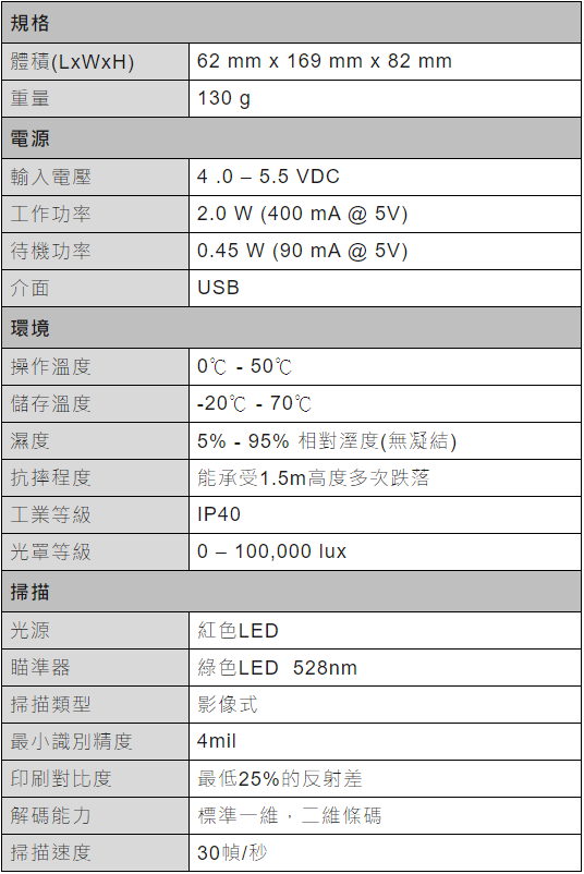精緻的外形設計適用於任何手型;手持握感舒適,即便是高強度的掃描作業,也不易疲勞。