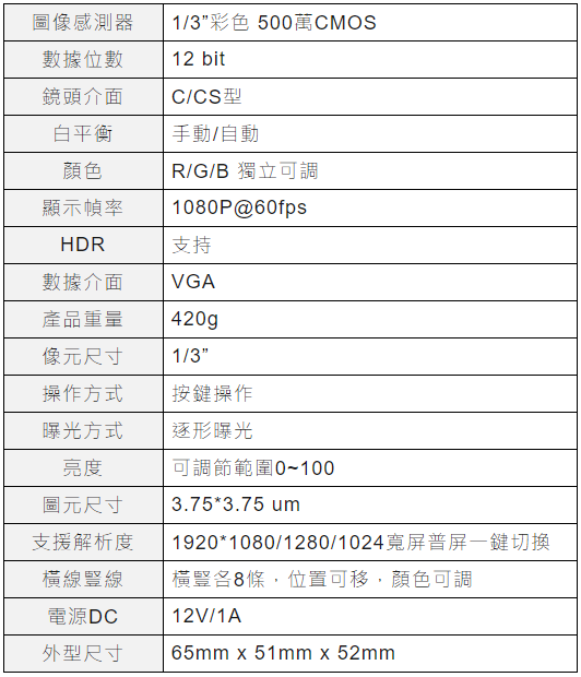 該功能將程式中各種調節參數保存起來,下一次開機時會自動調取這些參數。該功能保存以下幾上參數:曝光值,R B增益值,十字線位置值。保存時間大約1秒鐘。通過按“Menu”鍵選擇到“保存”,按下“OK”,一秒後就完成保存功能。自動返回到初始狀態。