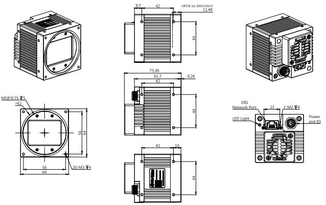 - 採用標準萬兆網介面設計,超六類網線即可實現穩定通訊,相比CameraLink介面搭配採集卡的方式成本大幅度降低