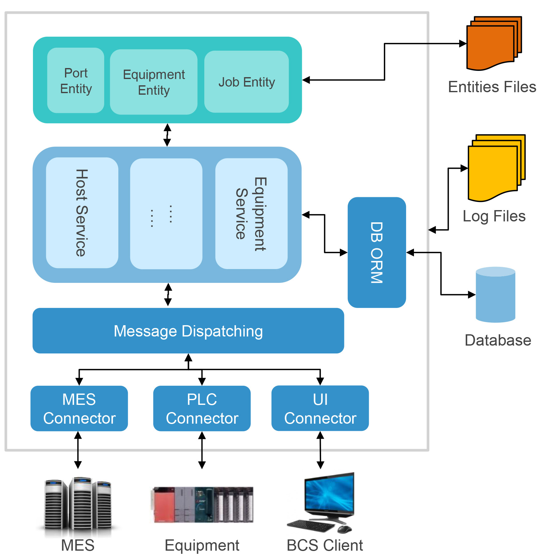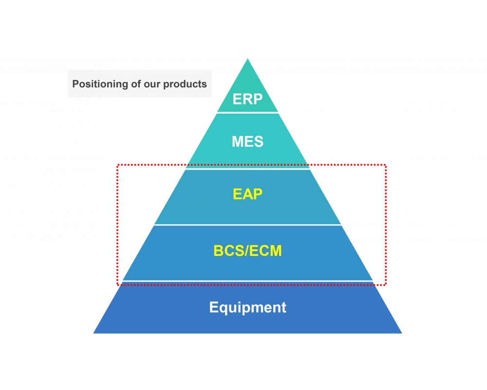 - BCS/ECM: 負責監視、控制機台的狀態,並管理產線或是機台內的在製品(WIP)資料,提供與下位機台和上位系統的資料整合方案。